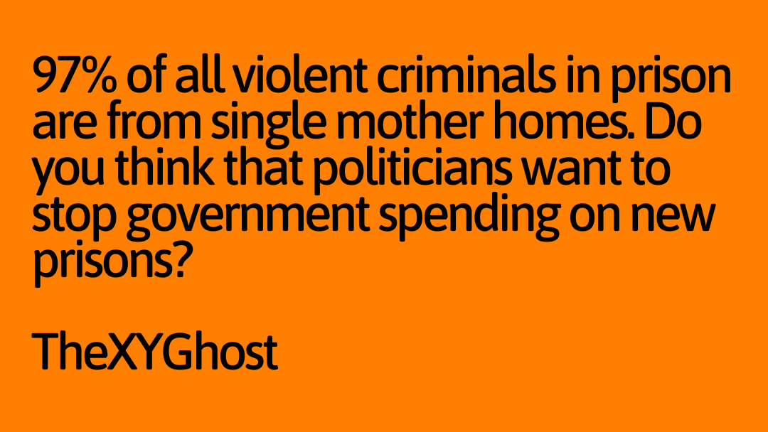 97% of all violent criminals in prison are from single mother homes. Do you think that politicians want to stop government spending on new prisons?