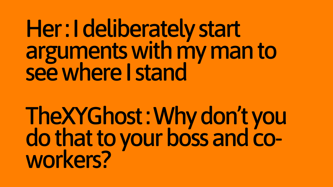 TheXYGhost : Why don’t you do that to your boss and co-workers?