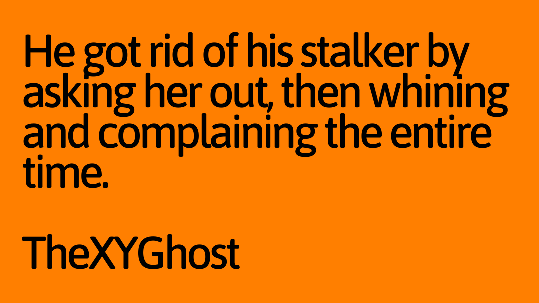 He got rid of his stalker by asking her out, then whining and complaining the entire time.
