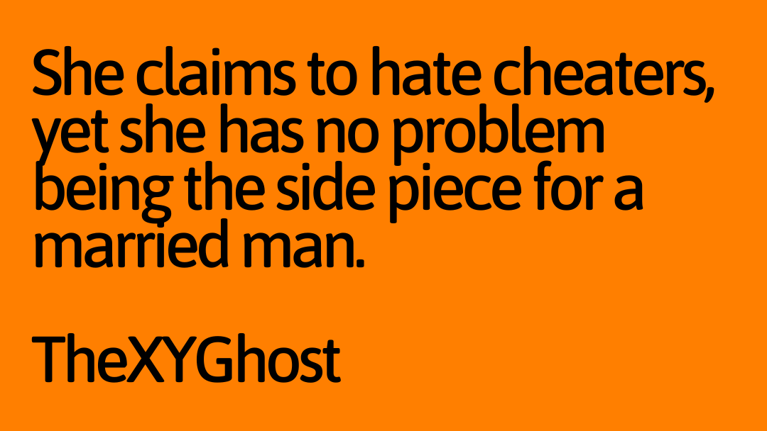 She claims to hate cheaters, yet she has no problem being the side piece for a married man.
