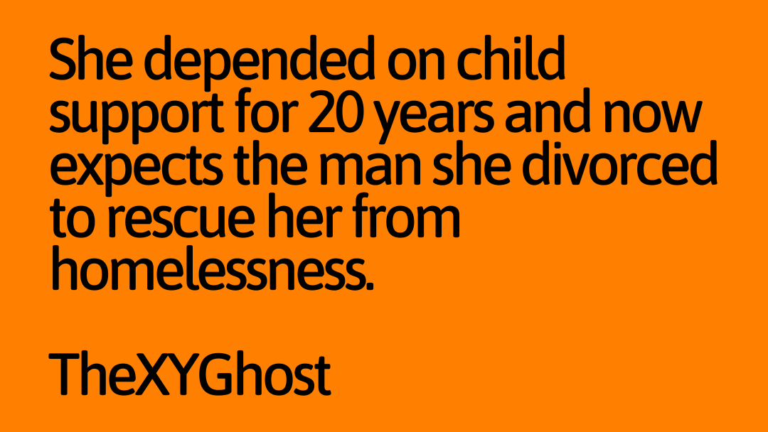 She depended on child support for 20 years and now expects the man she divorced to rescue her from homelessness.