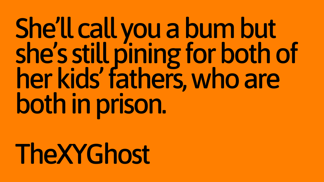 She’ll call you a bum but she’s still pining for both of her kids’ fathers, who are both in prison.