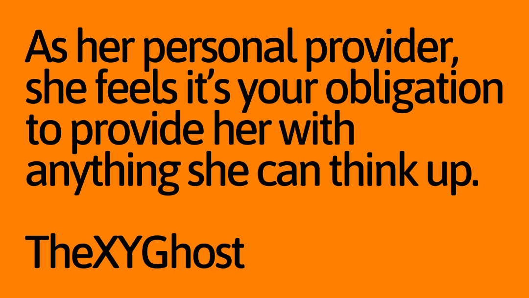 As her personal provider, she feels it’s your obligation to provide her with anything she can think up.