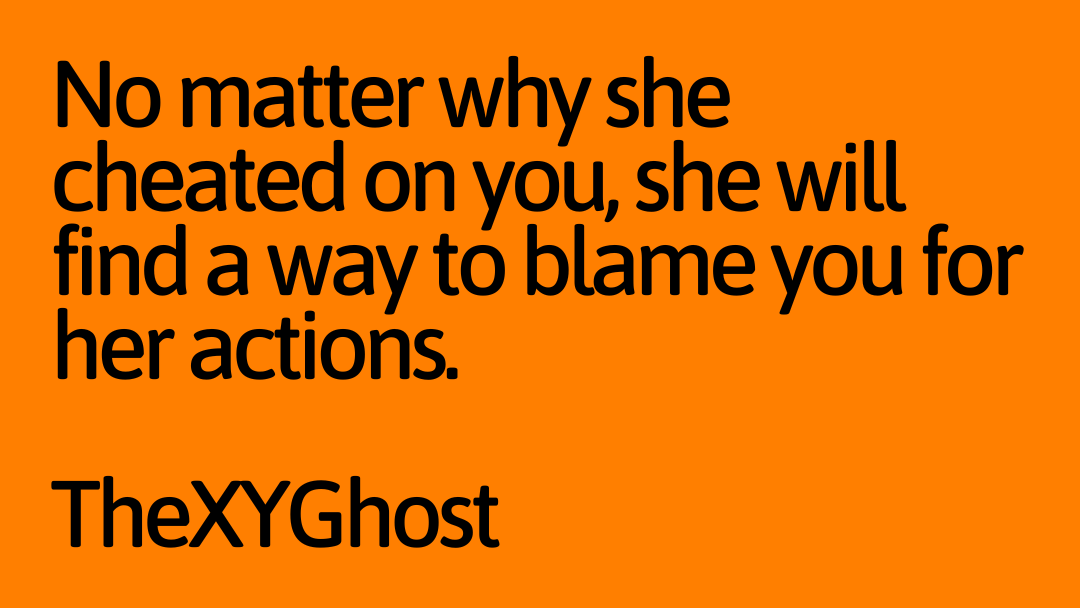 No matter why she cheated on you, she will find a way to blame you for her actions.