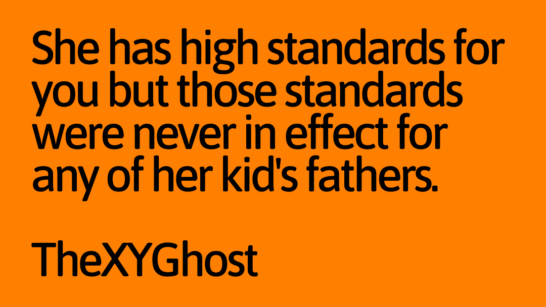 She has high standards for you but those standards were never in effect for any of her kid’s fathers.