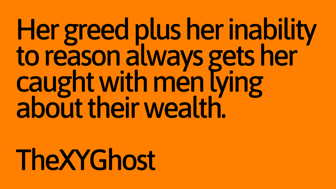 Her greed plus her inability to reason always gets her caught with men lying about their wealth.