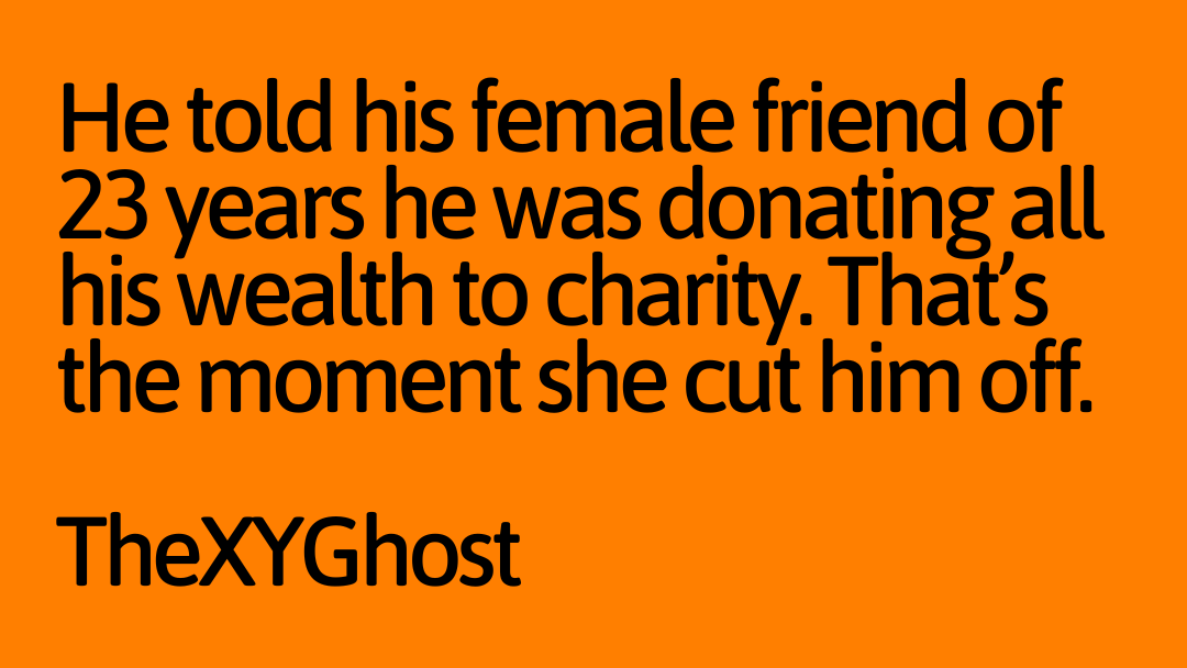 He told his female friend of 23 years he was donating all his wealth to charity. That’s the moment she cut him off.