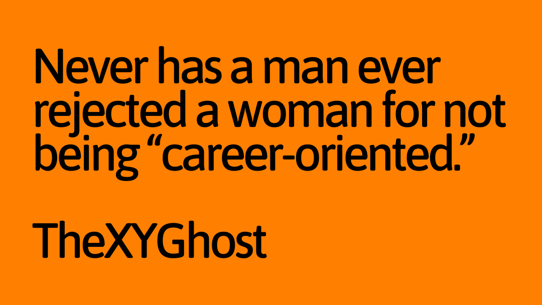 Never has a man ever rejected a woman for not being “career-oriented.”