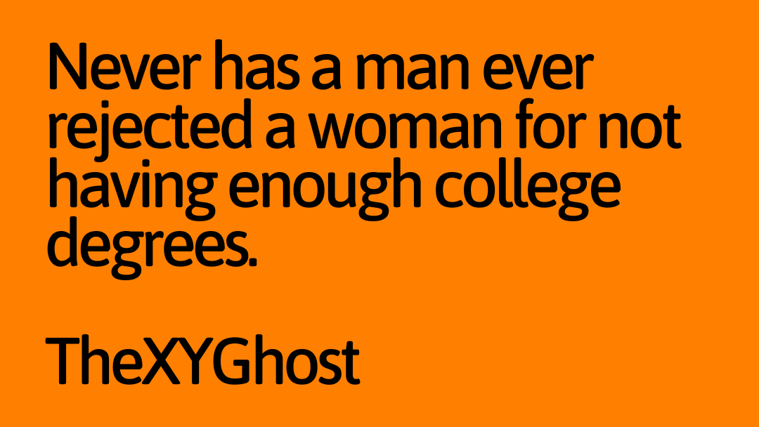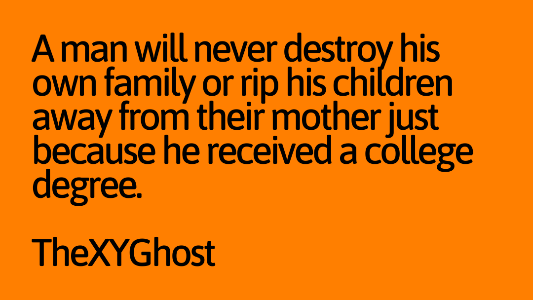 A man will never destroy his own family or rip his children away from their mother just because he received a college degree.