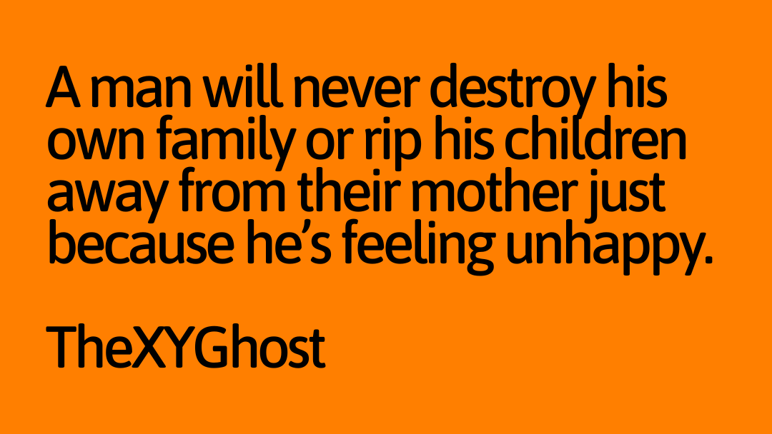 A man will never destroy his own family or rip his children away from their mother just because he’s feeling unhappy.