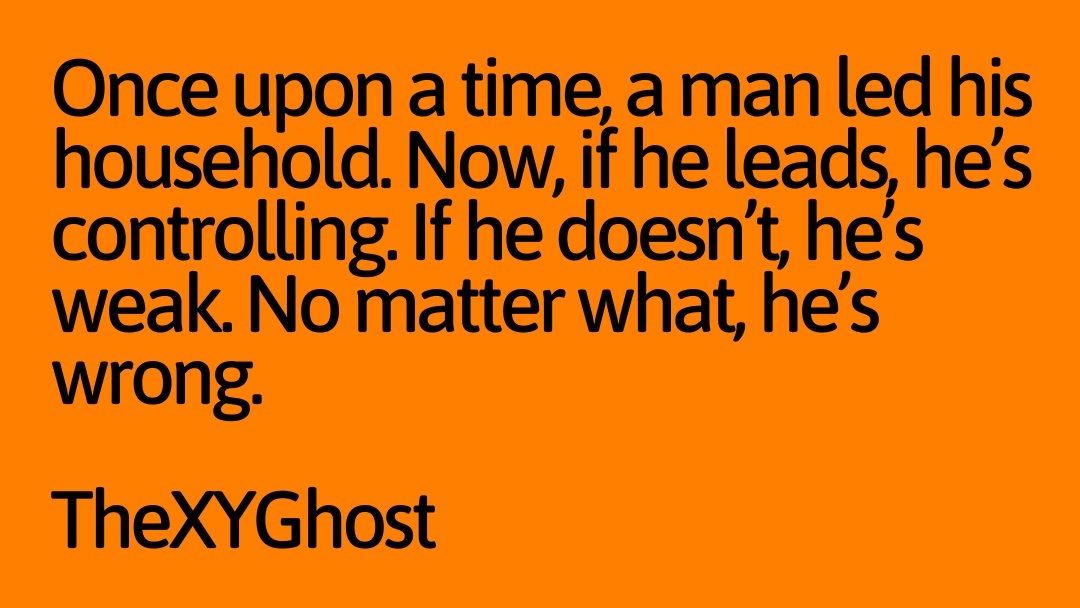 Once upon a time, a man led his household. Now, if he leads, he’s controlling. If he doesn’t, he’s weak. No matter what, he’s wrong.