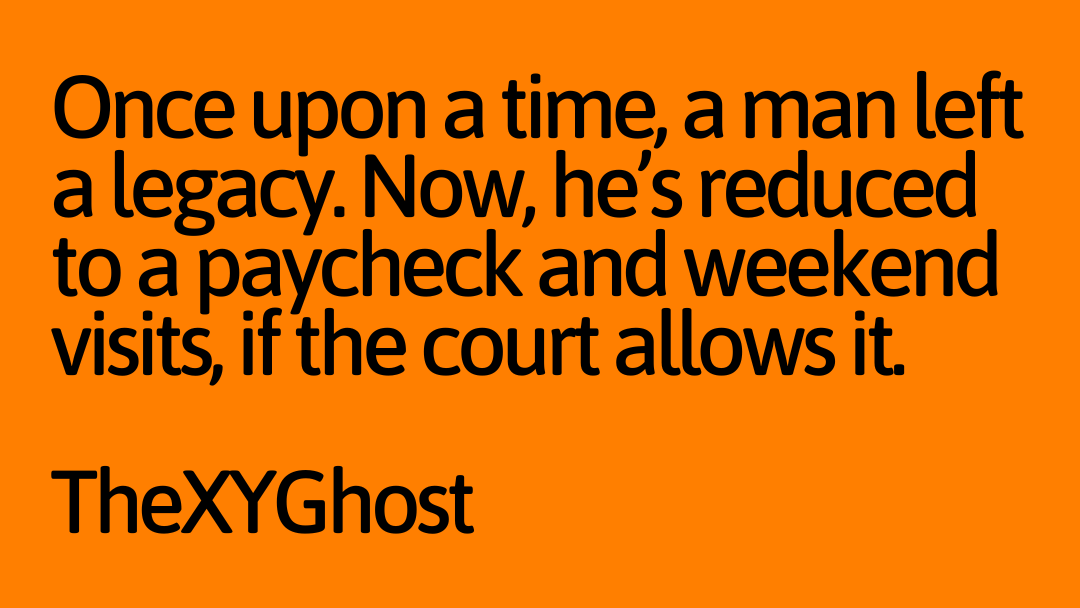 Once upon a time, a man left a legacy. Now, he’s reduced to a paycheck and weekend visits, if the court allows it.