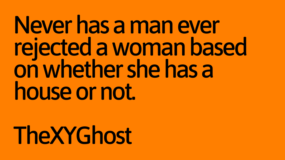 Never has a man ever rejected a woman based on whether she has a house or not.