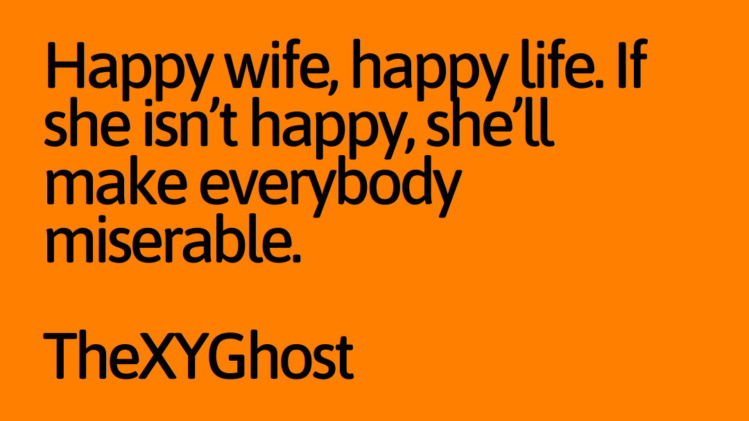 Happy wife, happy life. If she isn’t happy, she’ll make everybody miserable.