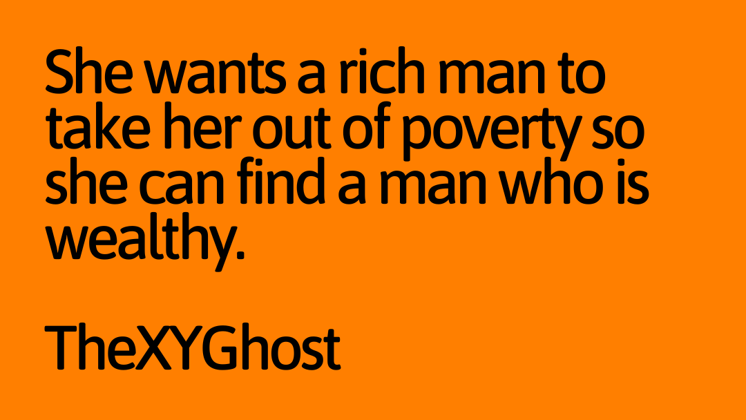 She wants a rich man to take her out of poverty so she can find a man who is wealthy.