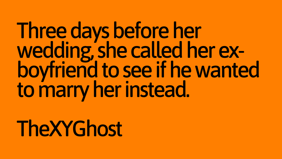 Three days before her wedding, she called her ex-boyfriend to see if he wanted to marry her instead.