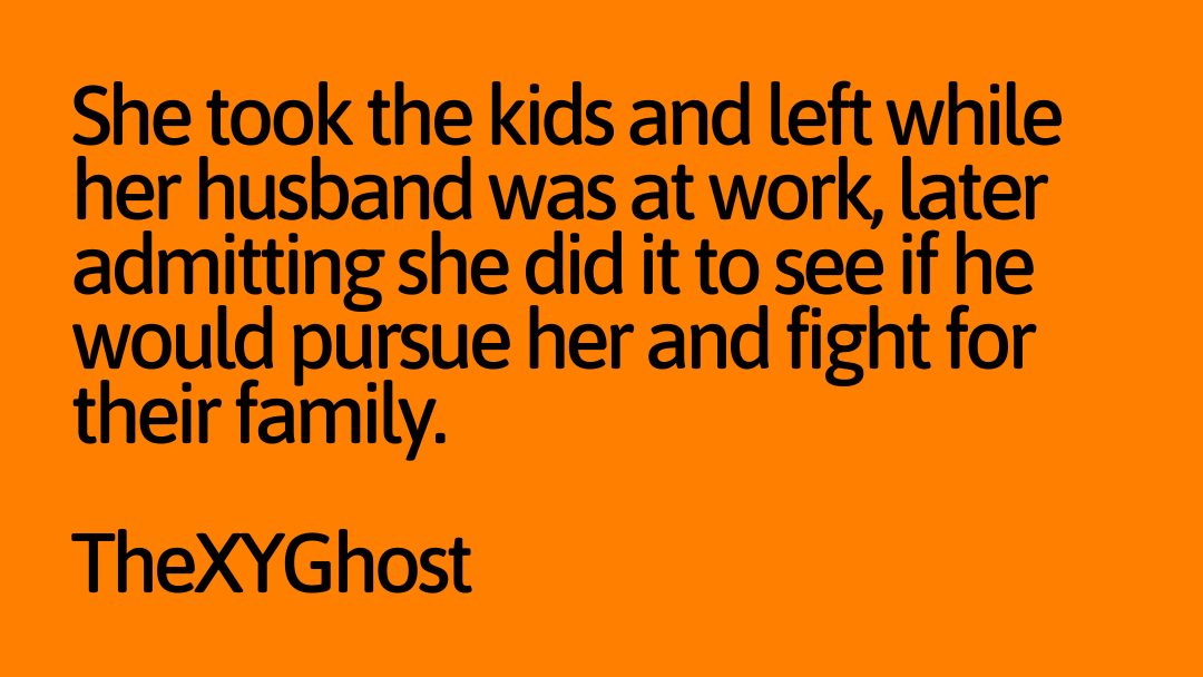 She took the kids and left while her husband was at work, later admitting she did it to see if he would pursue her and fight for their family.