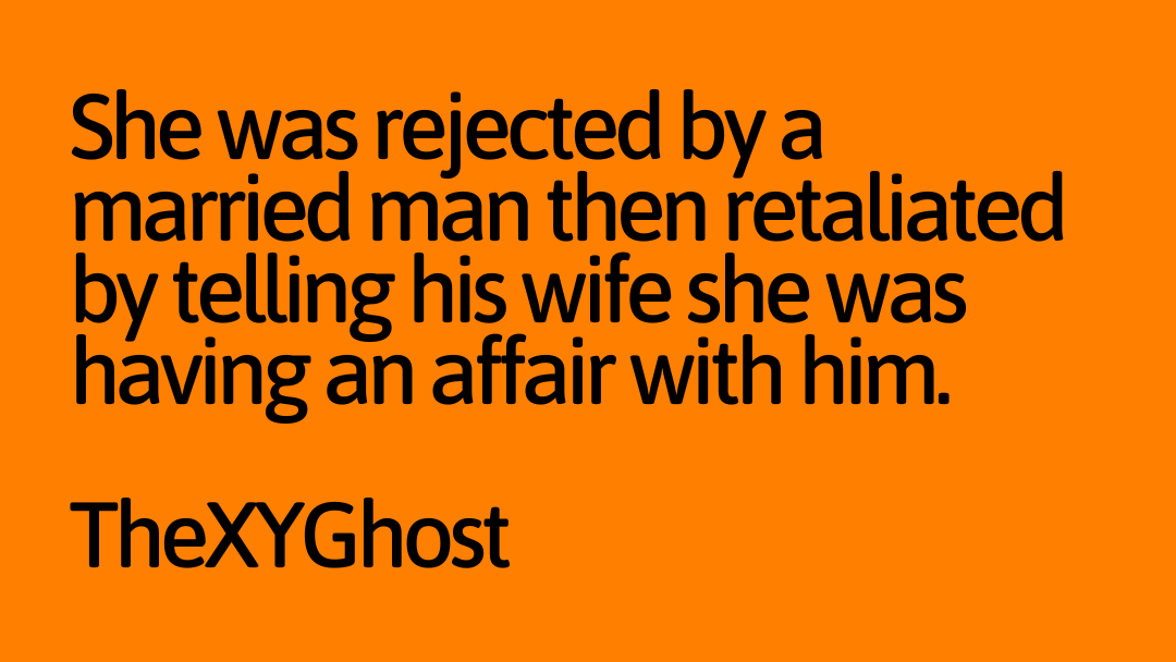 She was rejected by a married man then retaliated by telling his wife she was having an affair with him.