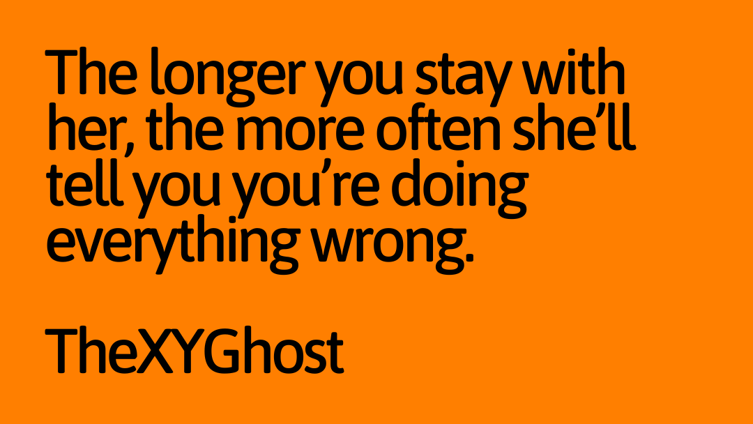 The longer you stay with her, the more often she’ll tell you you’re doing everything wrong.