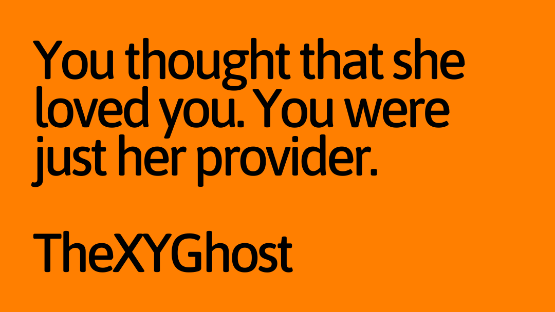 You thought that she loved you. You were just her provider.