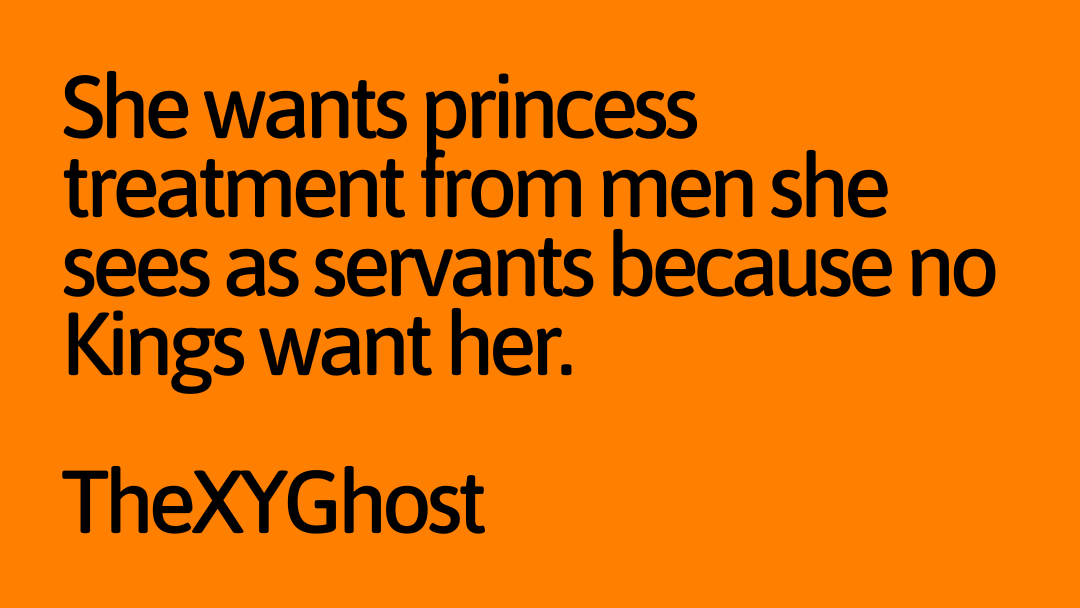 She wants princess treatment from men she sees as servants because no Kings want her.
