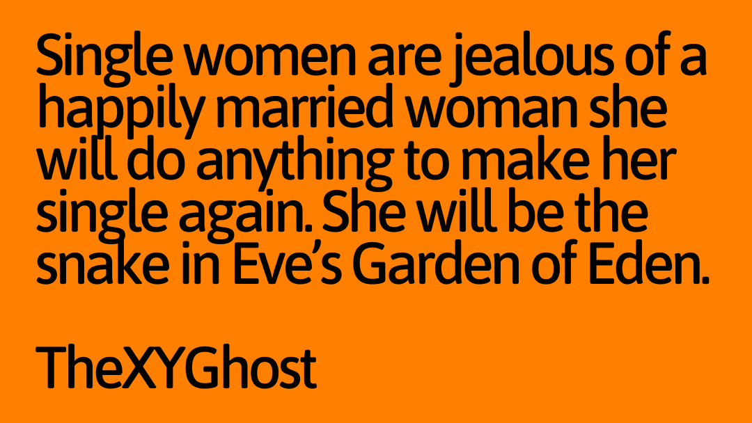 Single women are jealous of a happily married woman she will do anything to make her single again. She will be the snake in Eve’s Garden of Eden.