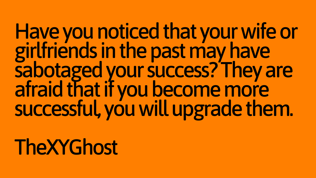 Have you noticed that your wife or girlfriends in the past may have sabotaged your success? They are afraid that if you become successful, you will upgrade them.